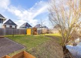 De woning heeft een nette voor, zij en achtertuin met een houten vlondersteiger direct aan het water. Een speels ingerichte tuin met gazon en een afgeschermd gedeelte – perfect voor kleine huisdieren.
