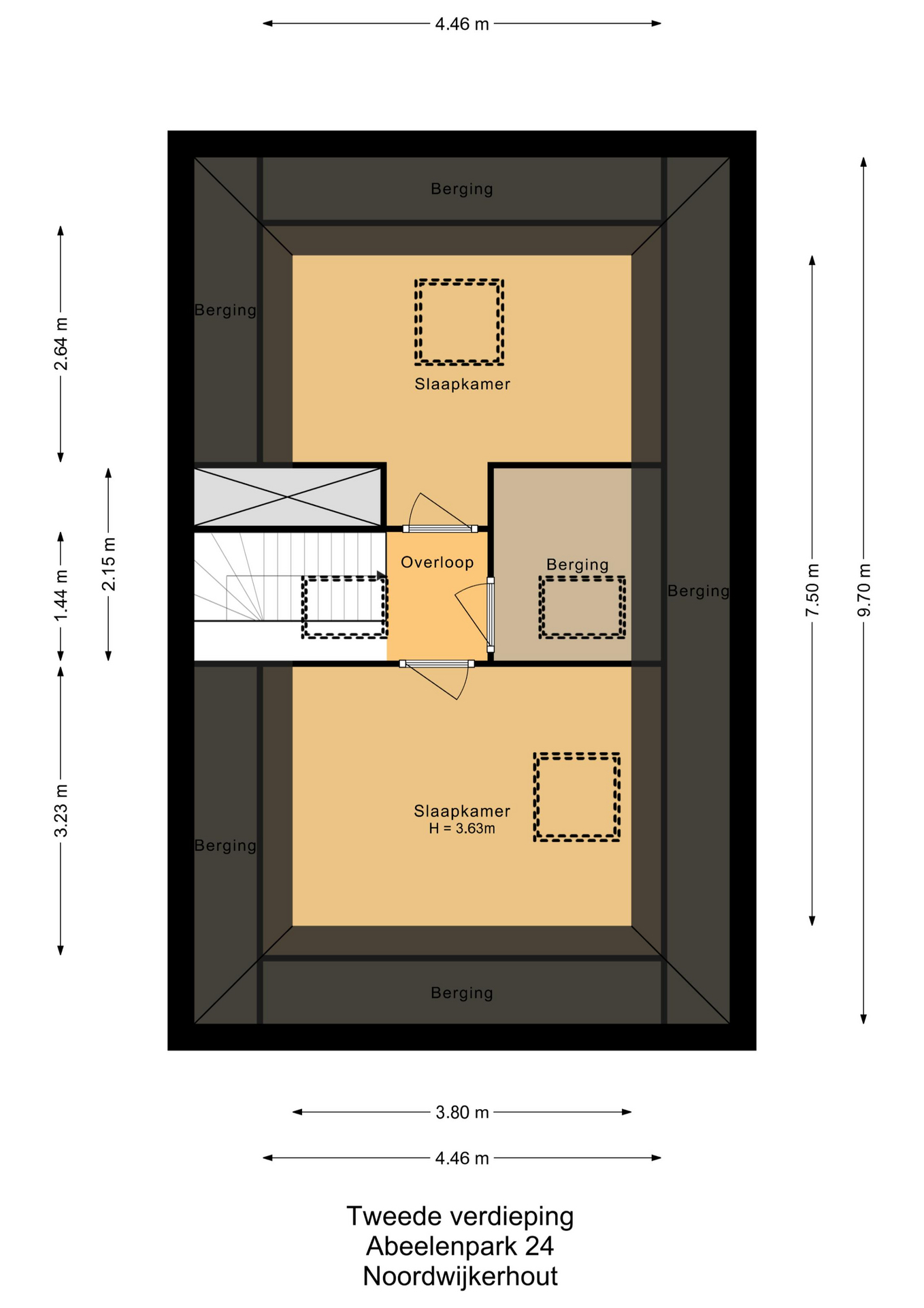 De tweede etage beschikt over nog eens twee slaapkamers, beide met dakramen, en extra bergruimte.