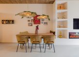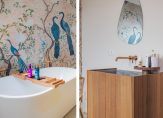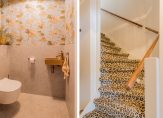 Praktisch is de trapkast met de opstelling van de warmtepomp en extra bergruimte. En dan de trap zelf: een echte eyecatcher met een gedurfde luipaardprint.