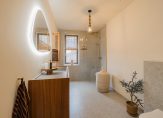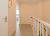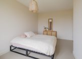 Op de eerste verdieping bevinden zich drie slaapkamers: twee royale kamers en een derde, perfect als studeerkamer, babykamer of inloopkast. Ook hier ligt woonbeton en is vloerverwarming aanwezig.