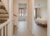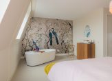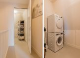 De tweede verdieping is bijna volledig benut als mastersuite. Een heerlijke slaapkamer met vrijstaand ligbad, een maatwerk wastafelmeubel met natuursteen én een royale inloopkast maken dit een echte retreat. Daarnaast is er op deze verdieping nog een ruime, aparte technische ruimte met opstelling voor wasmachine en droger en de mechanische ventilatie.