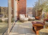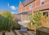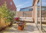 Zomers geniet je hier de hele dag van de zon. De voortuin onder de veranda is perfect voor een kop koffie in de ochtendzon. De achtertuin op het zuiden is fraai aangelegd met cortenstalen plantenbakken, sfeervolle verlichting en een elektrisch zonnescherm over de volle breedte.