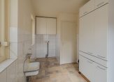 Grenzend aan de keuken bevindt zich de handige bijkeuken met wasmachine-aansluiting en de cv-installatie. Vanuit hier loop je ook zo de tuin in.