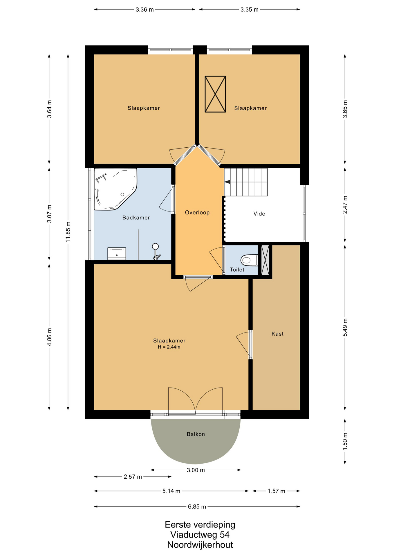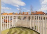 Op de eerste etage vind je een royale overloop met een apart tweede toilet. De hoofdslaapkamer is extra ruim en voorzien van een vaste kastenwand en openslaande deuren naar een balkon. Daarnaast zijn er nog twee ruime slaapkamers aan de achterzijde van de woning. De badkamer beschikt over een hoekbad, aparte douche en een badkamermeubel.