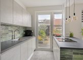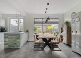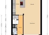 – De woonkamer ( oppervlakte, inclusief open keuken: circa 37 is m²) heeft een mooie daglichttoetreding en is afgewerkt met een pvc-vloer, gestukadoorde wanden en plafonds.