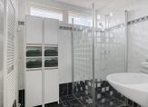 – De luxe badkamer is geheel betegeld en beschikt over een inloopdouche, een wastafelmeubel, een hangend toilet en een designradiator.