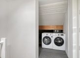 – Op de overloop bevinden zich de aansluitingen voor de wasapparatuur en de HR-combiketel (Remeha Tzerra ace, bouwjaar 2021).