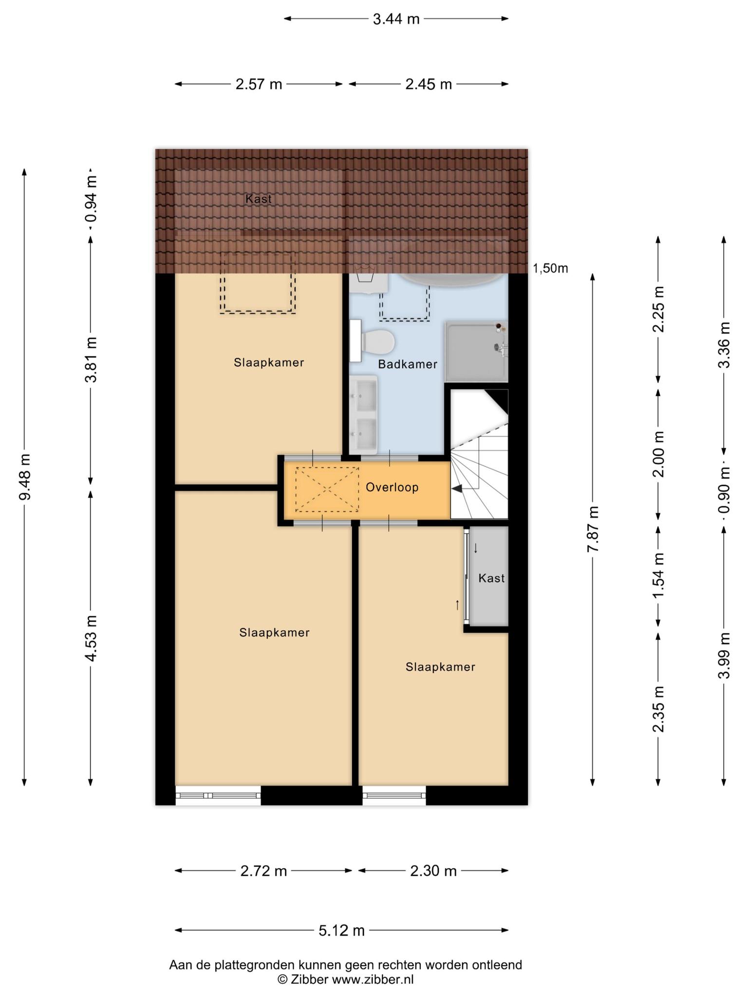 – 3 fijne slaapkamers (oppervlakten: respectievelijk circa 7, 9 en 12 m²); alle slaapkamers beschikken over een