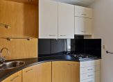 – Halfopen keuken met een luxe kunststof inrichting, voorzien van een gaskookplaat, afzuigkap en koelkast. Daarnaast beschikt de keuken over een praktische inbouwkast voor extra opbergruimte.
