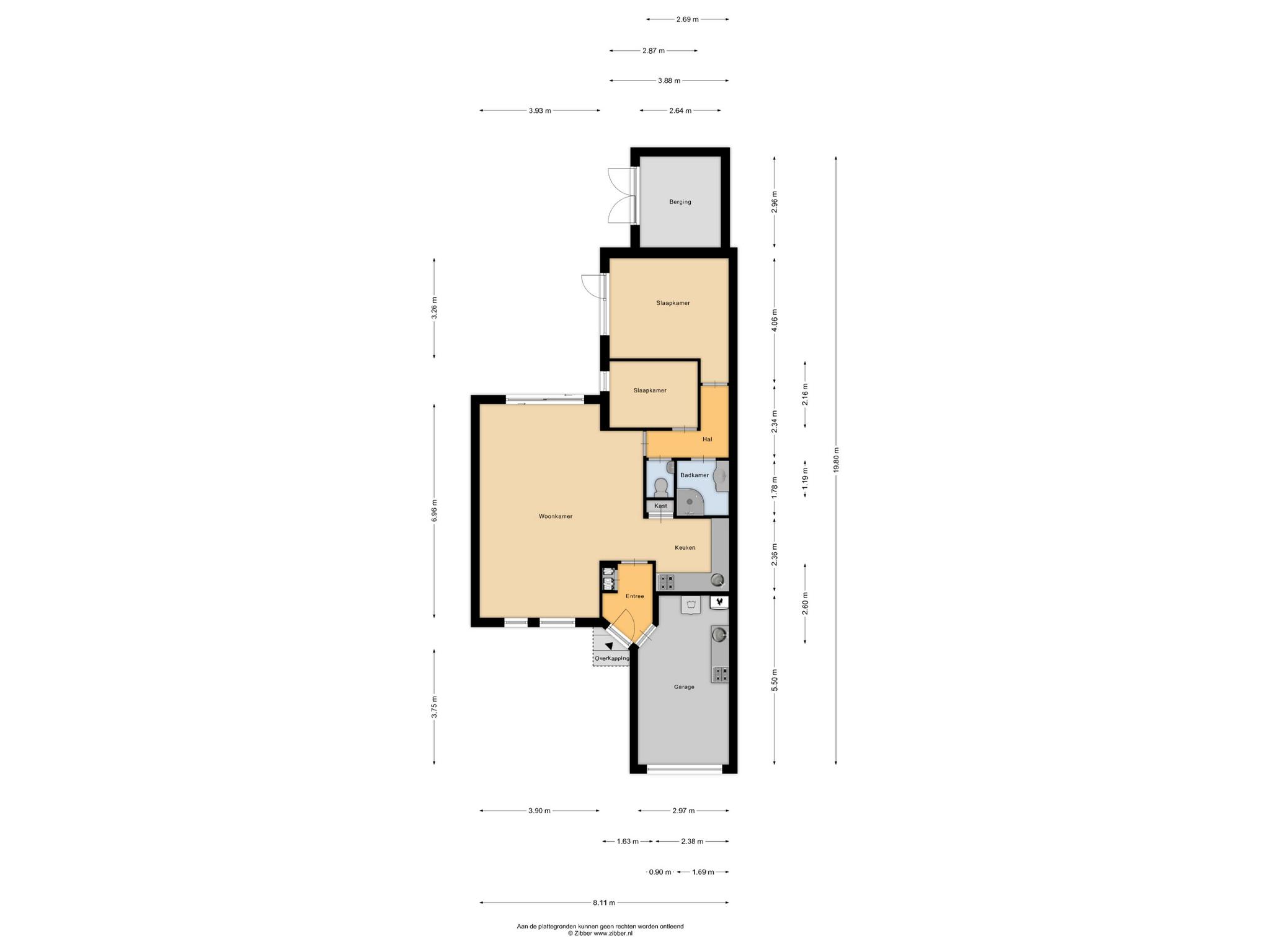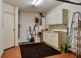 – Inpandig te bereiken garage ,(oppervlakte: circa 15 m²) voorzien van een stalen kanteldeur, elektra, aansluitingen voor de wasapparatuur en de CV-opstelling. Ook is er een extra keukenblokje.