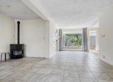 – Ruime, Z-vormige woonkamer (oppervlakte: circa 39 m²) met een verwarmde tegelvloer, gestukadoorde wanden en plafonds, en een gezellige gaskachel. Dankzij de grote raampartijen en schuifpui naar de achtertuin is er veel natuurlijke lichtinval.