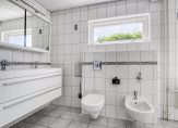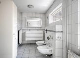 – Ruime en geheel betegelde badkamer (oppervlakte: circa 10 m²) met inloopdouche (met thermostaatkraan), ligbad, bidet, hangend toilet, dubbel wastafelmeubel en een vaste handdoekenkast.