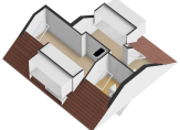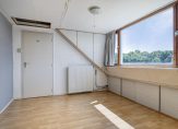– Riante slaapkamer aan de voorzijde (oppervlakte: circa 13 m²) onder de dakkapel met laminaatvloer en veel bergruimte in de kapschuinte.