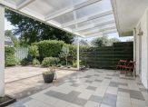 – Fraai aangelegde, onderhoudsvriendelijke achtertuin met een aluminium overkapping, betegeld terras, groene borders en een houten tuinberging met elektra. Via een achterom toegang tot een speeltuintje — ideaal voor jonge gezinnen. Ook op warme zomerdagen is het hier heerlijk toeven.