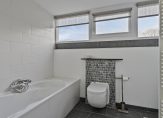 Overloop met dakraam en cv.-ruimte. Er zijn op de verdieping twee ruime slaapkamers met zijramen. De slaapkamers zijn open tot de nok, wat een mooi ruimtelijk effect geeft. De 2e badkamer in de woning is voorzien van een dakkapel en heeft zodoende veel lichtinval. Op de badkamer zijn een ligbad, wastafel en toilet. Er is ook elektrische vloerverwarming aanwezig.