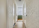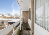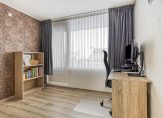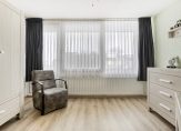 Op de eerste verdieping is een overloop welke toegang geeft tot 3 slaapkamers en de badkamer. De drie slaapkamers zijn respectievelijk circa 16.5, 13.7 en 9.6 m² groot, allen uitgevoerd met nette laminaatvloeren. De grootste slaapkamer beschikt over een vaste schuifkast en zowel aan de voor- als achterzijde is over de volledige breedte een balkon aanwezig. De geheel betegelde moderne badkamer is uitgevoerd met ligbad, douche, toilet en wastafelmeubel. De kleinste slaapkamer beschikt over de opstelling van de elektrische boiler en geeft middels een vaste trap toegang tot de tweede verdieping.