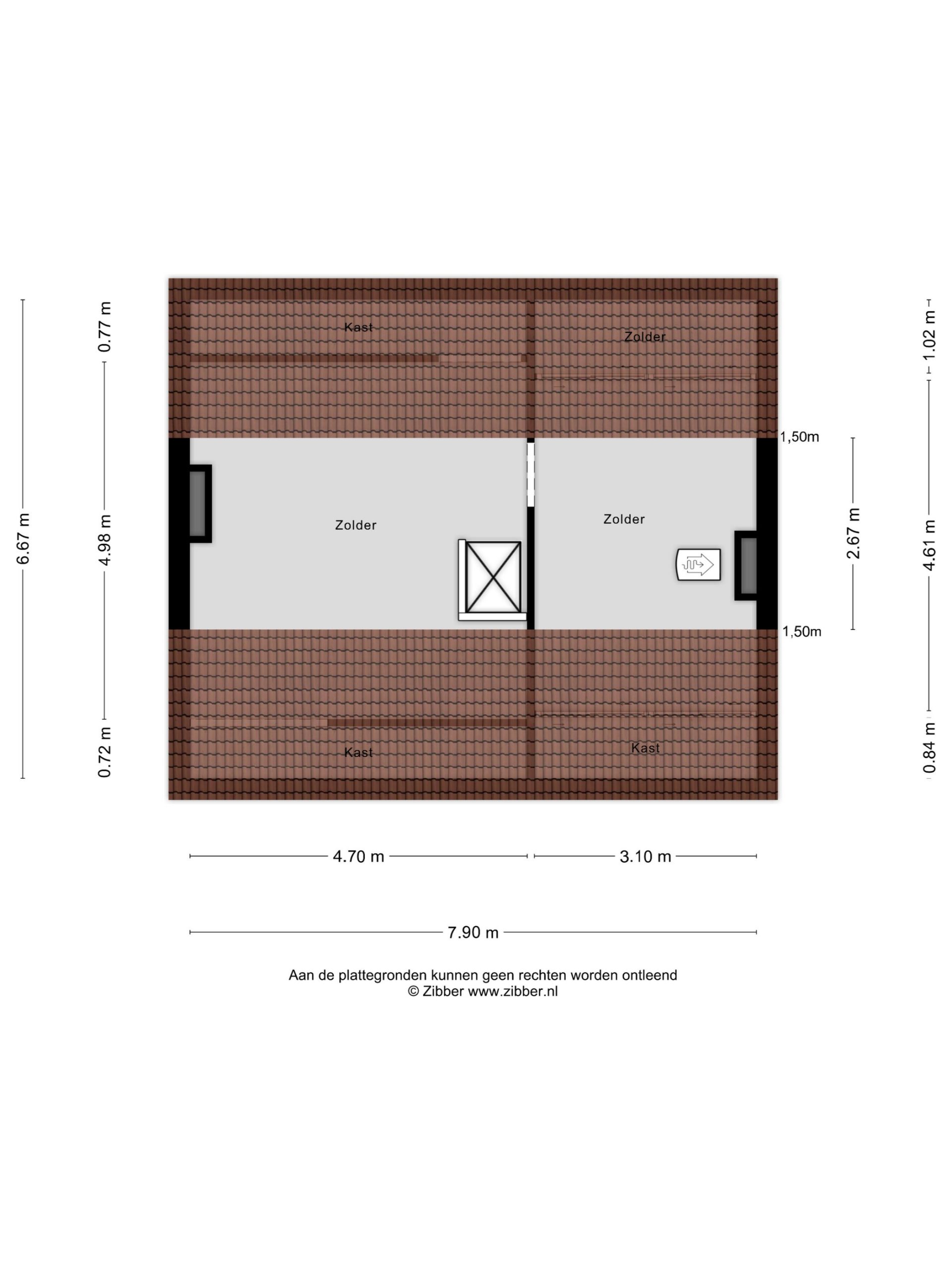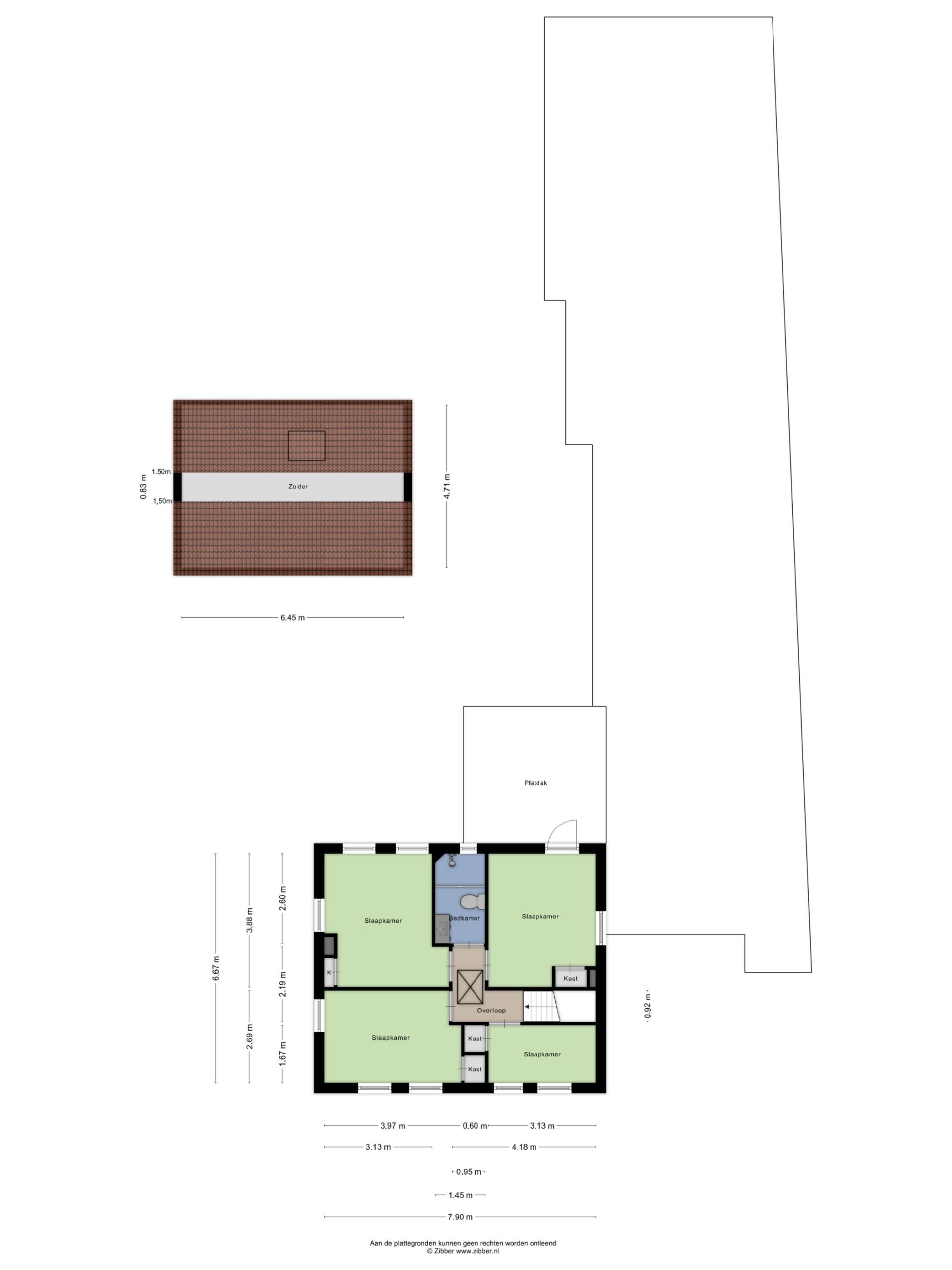 – woning op de 1e verdieping: 53 m²