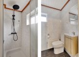 Op de 1e verdieping zijn 3 slaapkamers en een 2e badkamer. Deze badkamer is voorzien van een douche, toilet en kleine wastafel met meubel. Alle slaapkamers hebben laminaatvloeren en de raamkozijnen zijn uitgevoerd in kunststof met HR+++ beglazing. Ook zijn er rolluiken aanwezig bij de slaapkamers. Met een vlizotrap is open zolderruimte te bereiken. Deze zolder is volledig geïsoleerd en is geschikt voor de nodige bergruimte. Op zolder hangt ook de Nefit HR combiketel uit 2010.