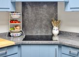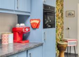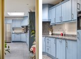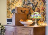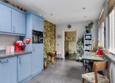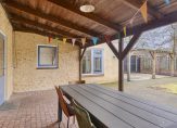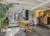 Hal met meterkast, de woonkamer is circa 27 m² met houten vloer, sfeervol balkenplafond en lichte strak gestuukte wandafwerkingen. In de aangebouwde keuken ligt een mooie tegelvloer met vloerverwarming en is een modern keukeninrichting compleet voorzien van inbouwapparatuur zoals een vaatwasser, combi oven/magnetron, inductiekookplaat en Amerikaanse koelkast. Vanuit de keuken is de bijkeuken/berging bereikbaar. In deze ruimte zijn buitendeuren naar de oprit en tuin met veranda. Verder beschikt de bijkeuken over een grote kastenwand met aansluitingen voor het witgoed.