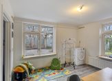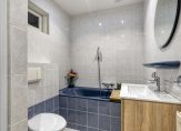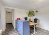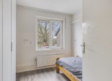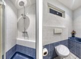 Op de begane grond zijn verder nog een badkamer en slaapkamer gelegen. De badkamer is ook vanuit de bijkeuken toegankelijk en uitgevoerd met een ligbad, douche, wandcloset en wastafel met meubel. Deze complete badkamer is voorzien van afzuiging. De slaapkamer op de begane grond is circa 13 m² groot en momenteel in gebruik als werk-/speelkamer. Hier is ook nog een grote kastruimte en zijn ramen gericht op de tuin.