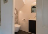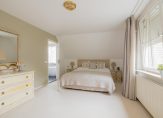 Op de eerste etage vind je drie grote slaapkamers. De ouderslaapkamer heeft een vaste kastenwand en een eigen badkamer met ligbad, inloopdouche en dubbele wastafel. De tweede badkamer beschikt over een inloopdouche en wastafel. Verder zijn er twee ruime slaapkamers waarvan 1 met vaste kastenwand en 1 met een dakkapel.