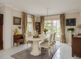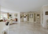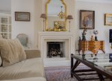 De sfeervolle en uitgebouwde woonkamer is heerlijk licht door de vele ramen, openslaande deuren en een gezellige erker. De centraal geplaatste open haard verbindt het zitgedeelte met de royale woonkeuken van bijna 7 meter breed. Dubbele deuren geven toegang tot de tuin.