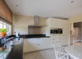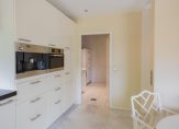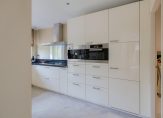 De luxe keuken is uitgerust met moderne inbouwapparatuur én een Quooker. Direct ernaast vind je een ruime bijkeuken met aansluitingen voor wasmachine en droger.