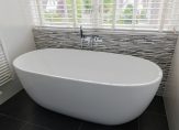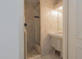 De natuurstenen vloer met vloerverwarming maakt het geheel compleet.