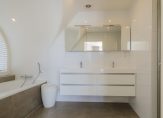 De verdieping telt vier goed bemeten slaapkamers, twee comfortabele badkamers en een apart toilet, welke in 2014 zijn gerenoveerd met een tijdloze en frisse afwerking. De royale ouderslaapkamer vormt een ware oase van rust en comfort. Dankzij de openslaande deuren naar het balkon wordt je ’s ochtends wakker met vrij uitzicht– een begin van de dag dat niet snel zal vervelen. Een grote kastenwand biedt volop ruimte voor kleding en accessoires, terwijl de slimme indeling zorgt voor een rustige, opgeruimde uitstraling. De kamer beschikt bovendien over een stijlvolle badkamer en suite, met een dubbel wastafelmeubel, ligbad, toilet en inloopdouche.