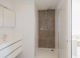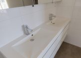 Ook de tweede badkamer is met zorg ingericht en praktisch in gebruik. Voorzien van een modern wastafelmeubel en een comfortabele inloopdouche is deze ideaal voor gezinsleden of gasten.