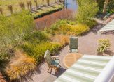 Stap via de openslaande deuren in de woonkamer of werkzamer de fraai aangelegde tuin in. In deze onder architectuur ontworpen buitenruimte vindt je diverse terrassen, elk met een eigen sfeer, ideaal om op elk moment van de dag te genieten van zon of schaduw.