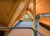 Boven de woning bevindt zich een verrassend ruime bergzolder, bereikbaar via een vlizotrap op de overloop. Deze strekt zich uit over de volle breedte en diepte van het huis en biedt een zee aan opbergruimte.