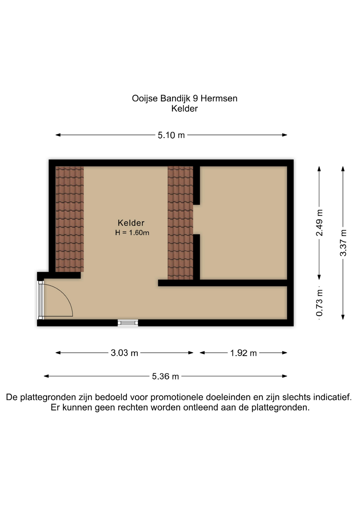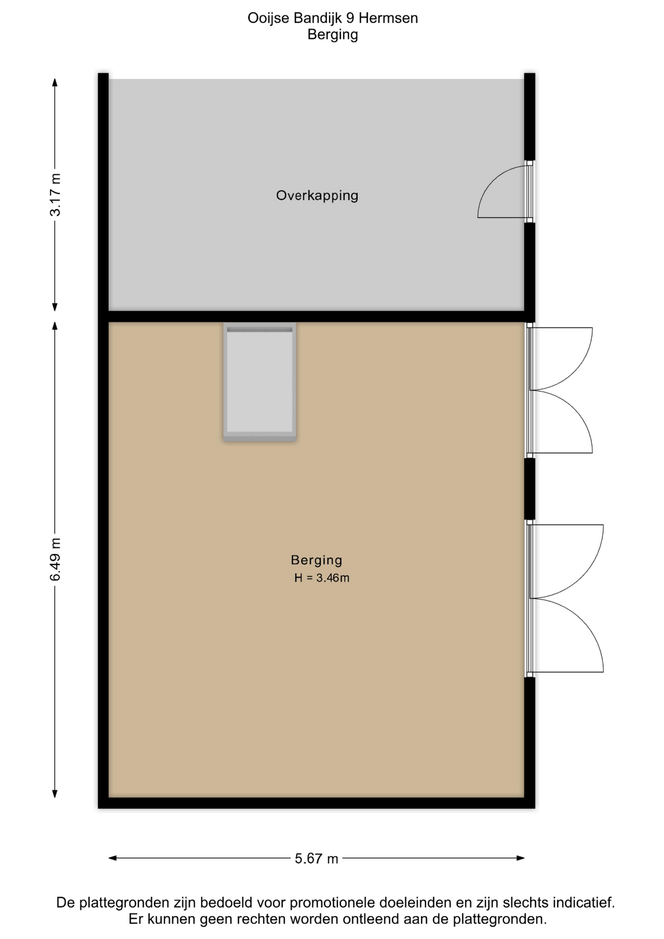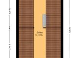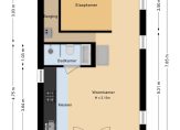 entree / dubbele deuren met uitzicht / woonkamer met open keuken voorzien van 4-pits gas, koelkast, afzuigkap / badkamer met douche, wastafel en toilet / vaste kast met cv-ketel / slaapkamer / vlizotrap naar bergzolder met eventueel een extra slaapkamer