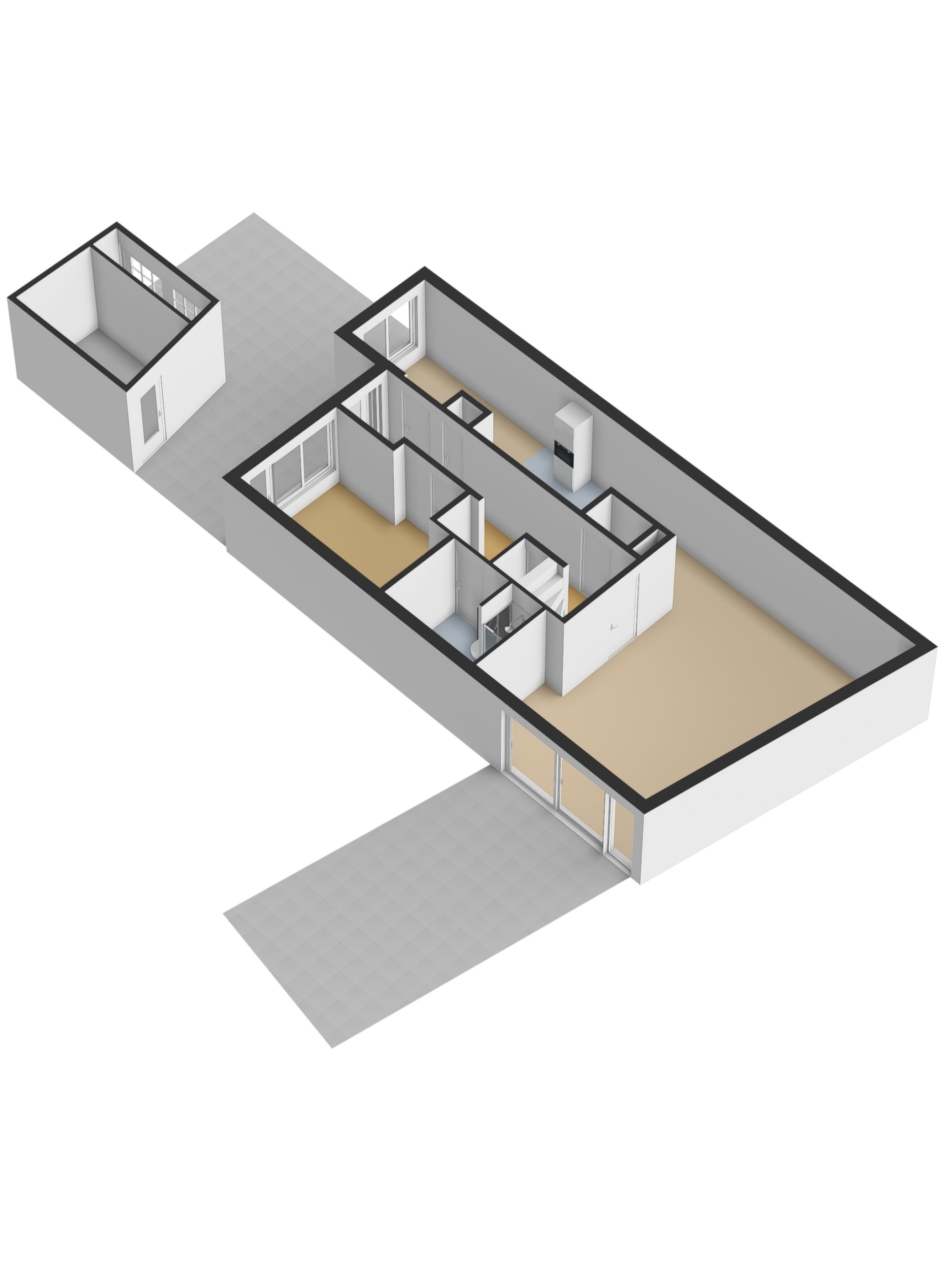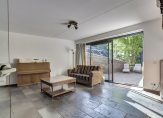 Aan de voorzijde van de woning bevindt zich een carport en een berging van circa 10 m². Aan de achterzijde heeft de woning een geheel betegelde tuin met een vrij uitzicht op de omliggende gemeentegrond en het groen. Het geheel heeft een rustige en parkachtige sfeer. Via een klein hekje is de gemeentegrond direct beschikbaar. De wanden aan beide zijden van de tuin zorgen voor een beschutte ligging met veel privacy, waardoor het een fijne plek is om buiten te ontspannen.