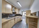 De lichte woonkamer is voorzien van een tegelvloer en een schuifpui naar de tuin. De open keuken heeft een speelse indeling met aan de andere zijde nog een extra stukje leefruimte, ideaal voor bijvoorbeeld een eethoek. De keuken is compleet uitgerust met een vaatwasser, afzuigkap, inductiekookplaat, koelkast en combimagnetron.