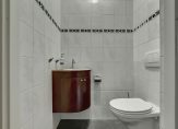 De royale overloop geeft u toegang tot 3 slaapkamers, badkamer en een aparte berging. De berging is handig als extra bergruimte en biedt plaats voor de cv-ketel en de aansluitingen voor wasapparatuur. De badkamer beschikt over een bidet, toilet, ligbad en een dubbele wastafel met meubel. Het balkon, bereikbaar vanaf de overloop, is een fijne plek om even te genieten van de frisse lucht.