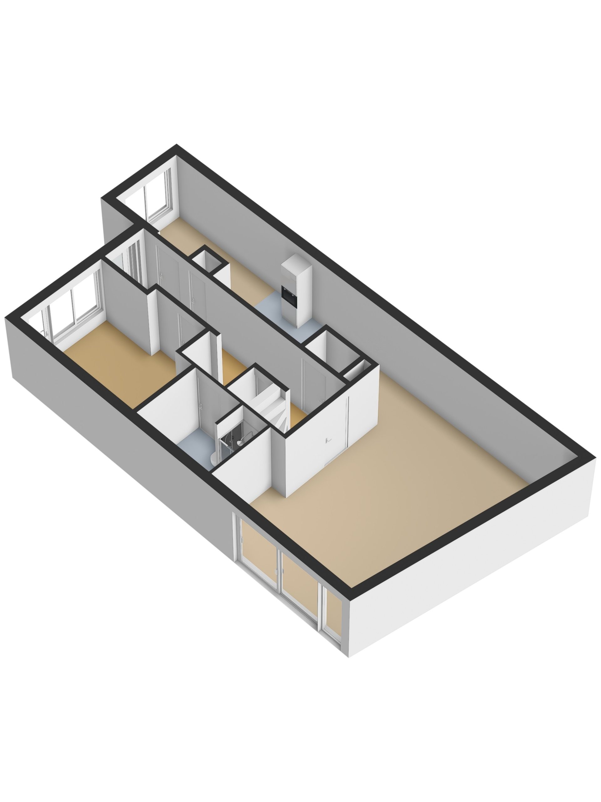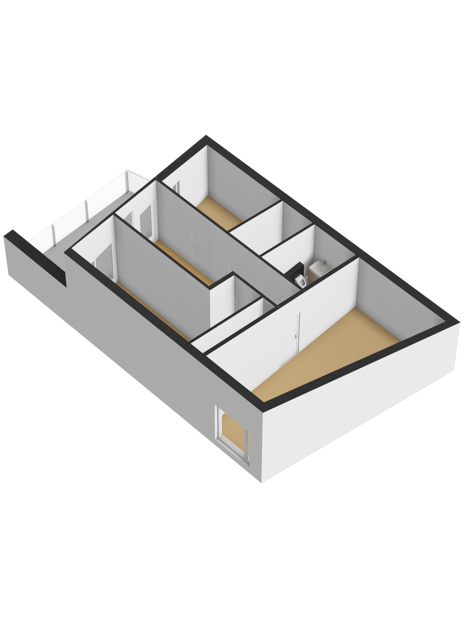 Slaapkamer III is circa 5,23 x 2,08 m en bevindt zich aan de voorzijde van de woning. Deze slaapkamer is voorzien van een vaste kastenwand;