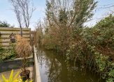 Zodra je de achterdeur opent, ontvouwt zich een totaal andere wereld. De zonnige onderhoudsvrije tuin op het zuidwesten grenst aan sierwater en biedt een vrij, groen uitzicht richting een monumentale woonboerderij aan de dijk van het schilderachtige rivier De Bullewijk met directe aansluiting op De Amstel. Geen directe achterburen, wél vogels, water en ruimte. Een zeldzame combinatie in deze omgeving.