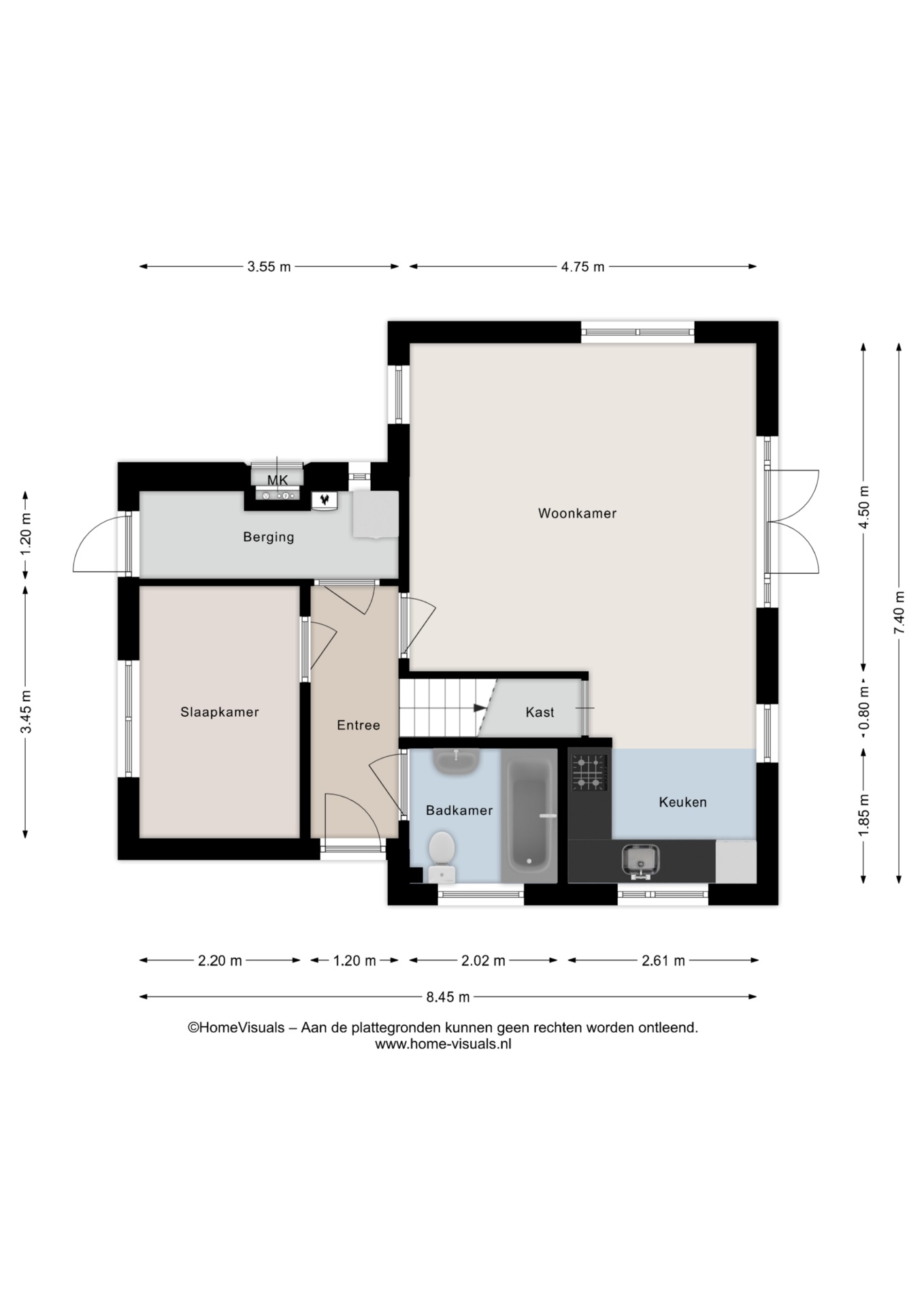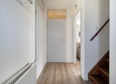 Entree/hal met trapopgang, een slaapkamer en een complete badkamer. Verder vindt u de sfeervolle woonkamer met pvc vloer, openslaande deuren met hordebescherming naar de tuin, een open keuken met inbouwapparatuur. Tevens is er een bijkeuken/wasruimte, voorzien van een deur naar buiten. Aan de buitenzijde bevindt zich de meterkast.