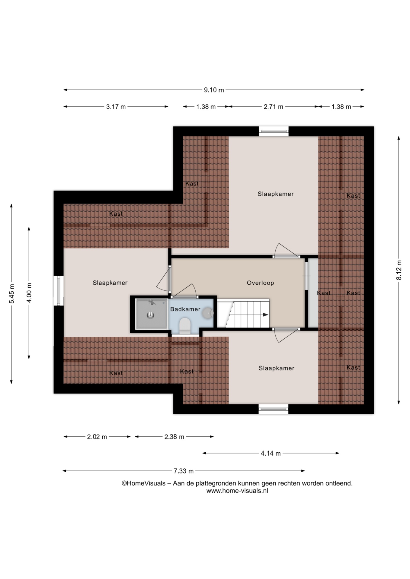 Op de verdieping bevinden zich nog drie volwaardige slaapkamers, bergruimte en een tweede badkamer met douche, toilet en wastafel.