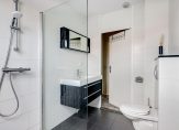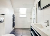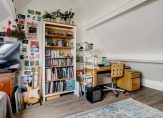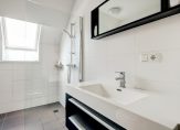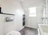 Heb je beneden alles bewonderd? Dan is het tijd om naar boven te gaan! Aan de voorzijde is de master bedroom, met een geweldige inloopkast en uitzicht om in te lijsten. De slaapkamer aan de achterzijde, met een groot dakraam, is nu in gebruik als werk-/studeerkamer. Werk je vanuit huis, dan is dit een heerlijke kamer met veel lichtinval. Of wordt dit het domein van je zoon of dochter? De badkamer is, net als de slaapkamers, heerlijk ruim en licht. Deze ruimte is ingedeeld met een grote inloopdouche, een breed wastafelmeubel met spiegel, een zwarte radiator en een wandcloset.