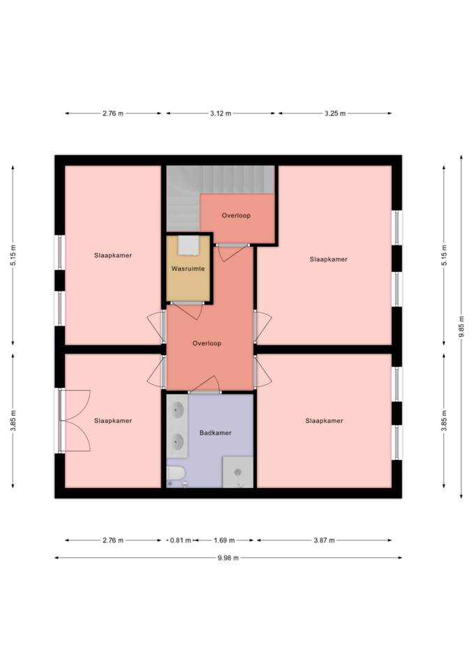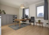 Op de tweede verdieping bevindt zich de slaap- en werkverdieping. Hier liggen vier slaapkamers rondom de luxe badkamer, waardoor de woning uitstekend geschikt is voor gezinnen, thuiswerkers, logees of iedereen die behoefte heeft aan extra ruimte. De badkamer is stijlvol uitgevoerd met een fraaie tegel, een ruime douche, toilet en een dubbel wastafelmeubel. Alle ruimtes op deze verdieping zijn voorzien van individueel instelbare vloerverwarming, zodat iedereen zijn eigen comfortniveau kan bepalen. Eén van de slaapkamers beschikt bovendien over een charmant Frans balkon met openslaande deuren. Een heerlijk detail om de dag fris te beginnen.