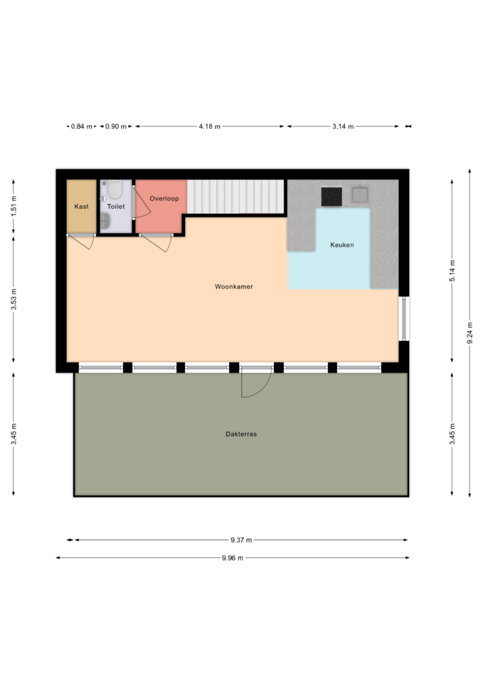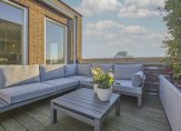 Via de woonkamer stap je zo het zonovergoten dakterras op: een heerlijke plek voor liefhebbers van buitenleven. Of je nu wilt borrelen, loungen of rustig een boek wilt lezen, hier zit je altijd goed. Met twee afzonderlijk bedienbare zonneschermen kies je zelf tussen zon of schaduw. De separate wasruimte is praktisch weggewerkt maar altijd binnen handbereik.