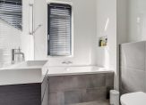 Op de overloop heeft u toegang tot drie slaapkamers en de moderne badkamer. De slaapkamers zijn voorzien van rolluiken voor extra privacy en verduistering. De gehele verdieping is uitgerust met vloerverwarming, die per kamer apart te regelen is en op de overloop vindt u een airconditioning die zorgt voor verkoeling in de zomermaanden. De badkamer is praktisch ingericht met een ligbad met douche, een wastafel met meubel en een toilet.