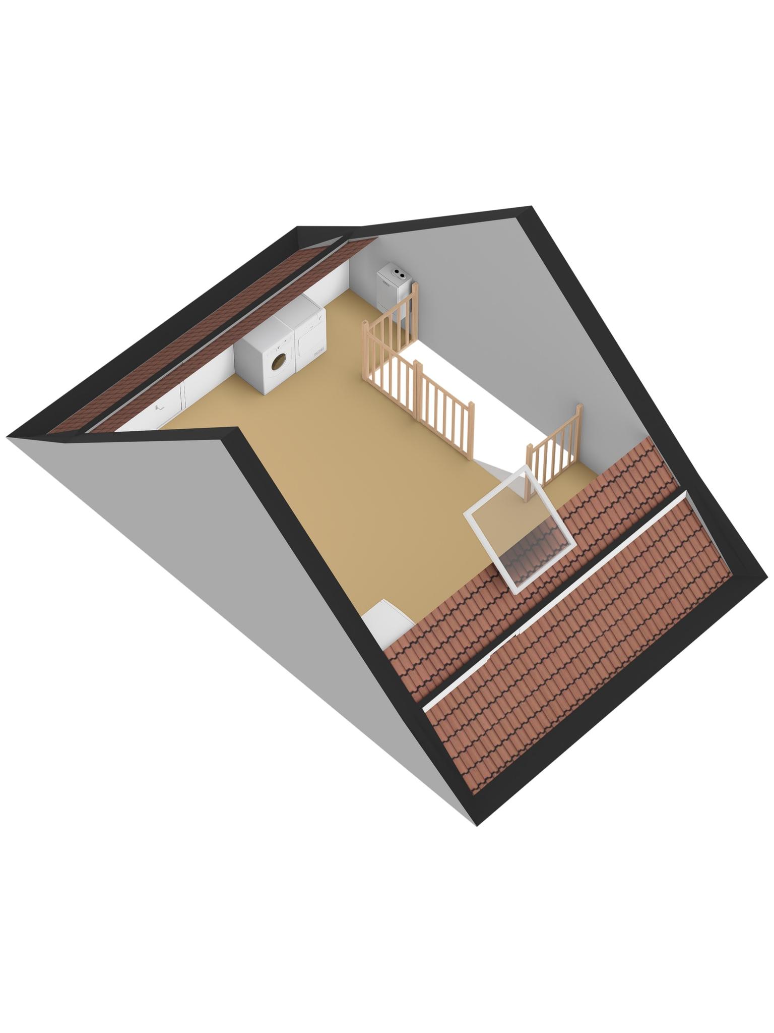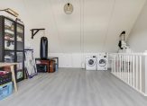 Via een vaste trap bereikt u de royale zolderverdieping, die volop mogelijkheden biedt. De zolder is momenteel in gebruik als bergruimte, maar biedt voldoende ruimte om een extra slaapkamer te creëren. Hier vindt u de aansluitingen voor de wasapparatuur en de c.v.-ketel. De schuine kanten van de zolder zijn voorzien van praktische knieschotten en aan de achterzijde bevindt zich een dakraam.