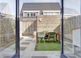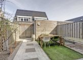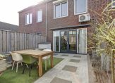 De achtertuin biedt een fijne buitenruimte om te ontspannen. Met een combinatie van sierbestrating, een gazon en een border is de basis al aanwezig, terwijl er volop mogelijkheden zijn om de tuin naar eigen wens verder aan te kleden. Daarnaast beschikt de tuin over een handige berging voor extra opslag en is er een zonnescherm, zodat u op warme dagen heerlijk in de schaduw kunt zitten. Kortom een heerlijke plek om van het buitenleven te genieten!