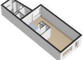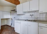 De hal geeft u toegang tot een toiletruimte en leidt u naar een handige inpandige berging. Deze berging is niet alleen van binnenuit bereikbaar, maar heeft ook een aparte toegang vanaf de buitenzijde, wat extra gemak biedt voor uw opslag. In deze berging bevindt zich eveneens de meterkast. Vanuit de hal krijgt u aan de andere kant toegang tot de open keuken, welke is voorzien van een vaste kast. Het eenvoudige keukenblok beschikt over een spoelbak en een afzuigkap. Vanuit de keuken komt u in de lichte, tuingerichte woonkamer, een ideale plek om te ontspannen. De indeling en het natuurlijke licht zorgen voor een gezellige sfeer, perfect om zowel rustig te zitten als samen te komen met vrienden en familie. Het uitzicht op de tuin maakt deze kamer tot een fijne plek om tot rust te komen. Halverwege de woonkamer krijgt u toegang tot de afgesloten trapopgang naar de eerste verdieping.