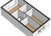 Slaapkamer II is circa 4,70 x 2,36 meter en bevindt zich aan de achterzijde van de woning;
