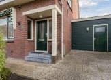 De voormalige garage is volledig geïsoleerd en ingericht als ruime bijkeuken. Hier vind je de cv-ketel (HR, 2004), wasmachine, droger, omvormer van de zonnepanelen en een wastafel met warm/koud water. Via zowel de voorzijde, de hal als de tuin is deze ruimte toegankelijk. Inbouwkasten bieden veel extra opbergruimte.