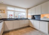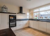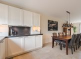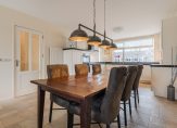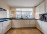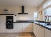 Aan de voorzijde ligt de moderne open keuken (2022), uitgerust met hoogwaardige apparatuur: grote inductiekookplaat, oven, combimagnetron, koelkast, vriezer, vaatwasser, Quooker en een hardstenen werkblad. Alle kastjes en laden zijn voorzien van soft-close.
